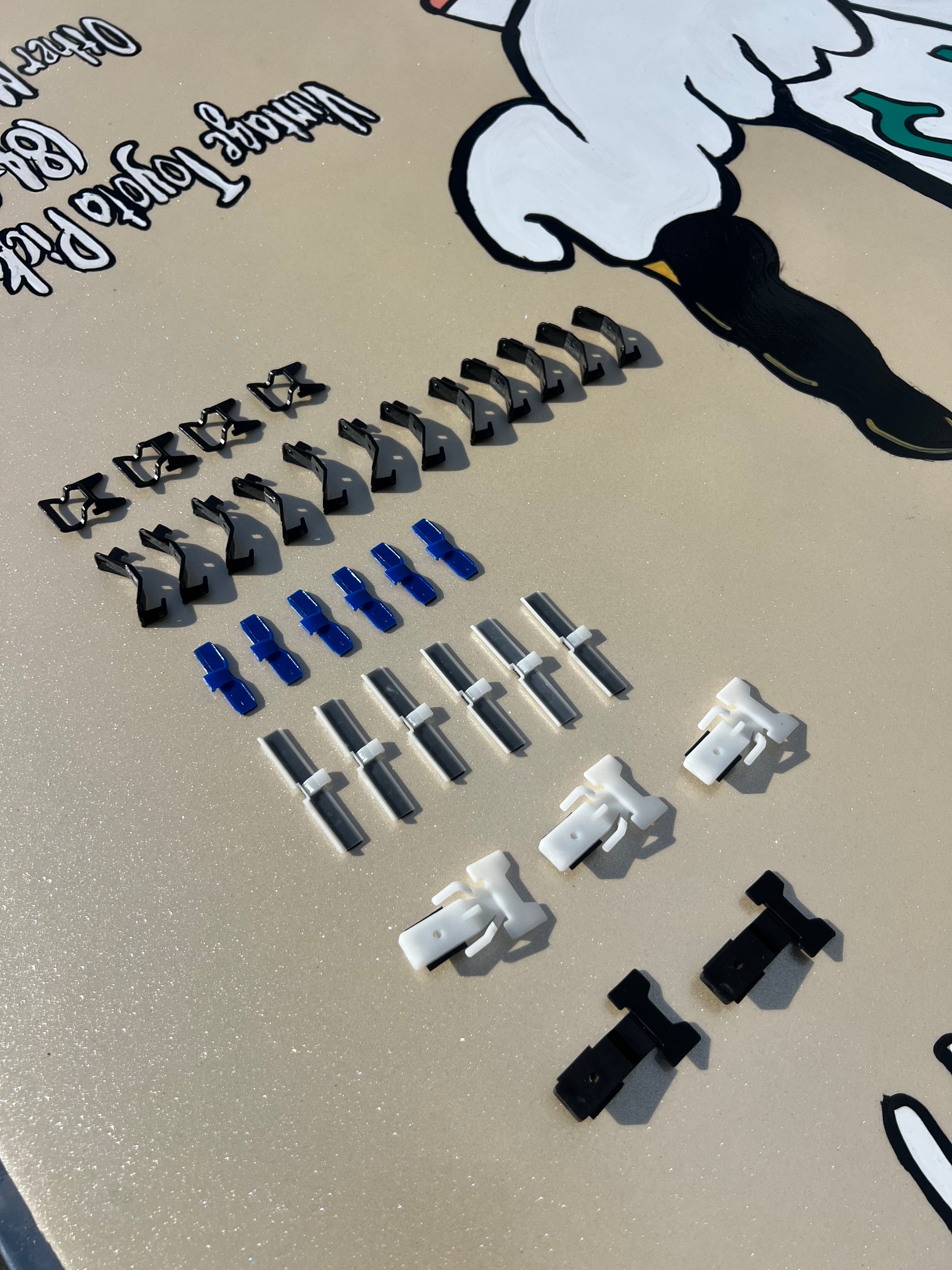 - Complete set of new windshield molding clips (exact pieces as pictured)